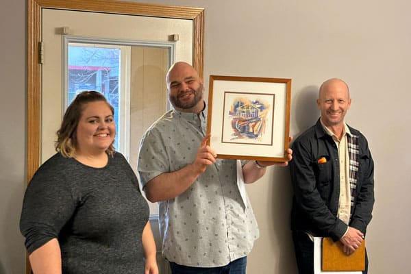 Two new homeowners receive Habitat wall art for their new home